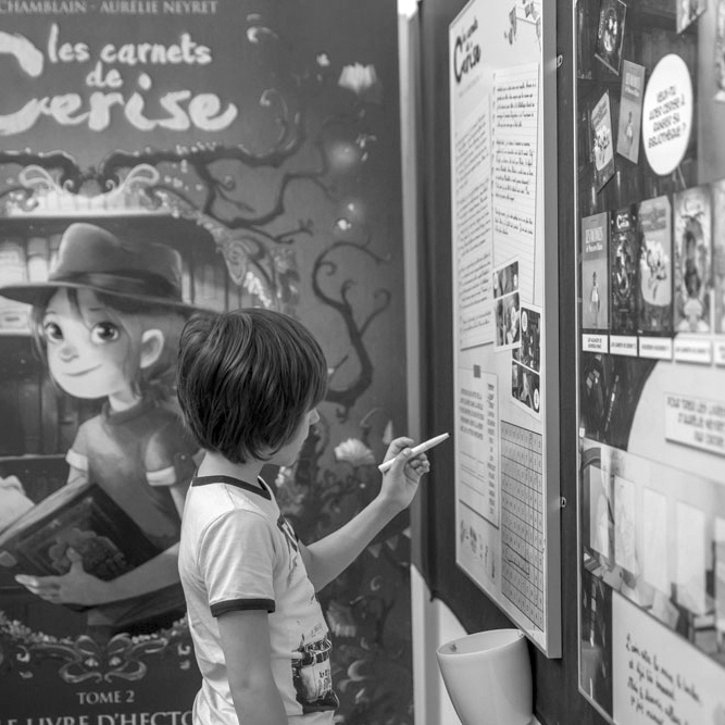 – L’accompagnement de projets autour de la bande dessinée à destination de publics variés, auteurs, collectivités, professionnels du Livre, de l’Éducation Nationale, …